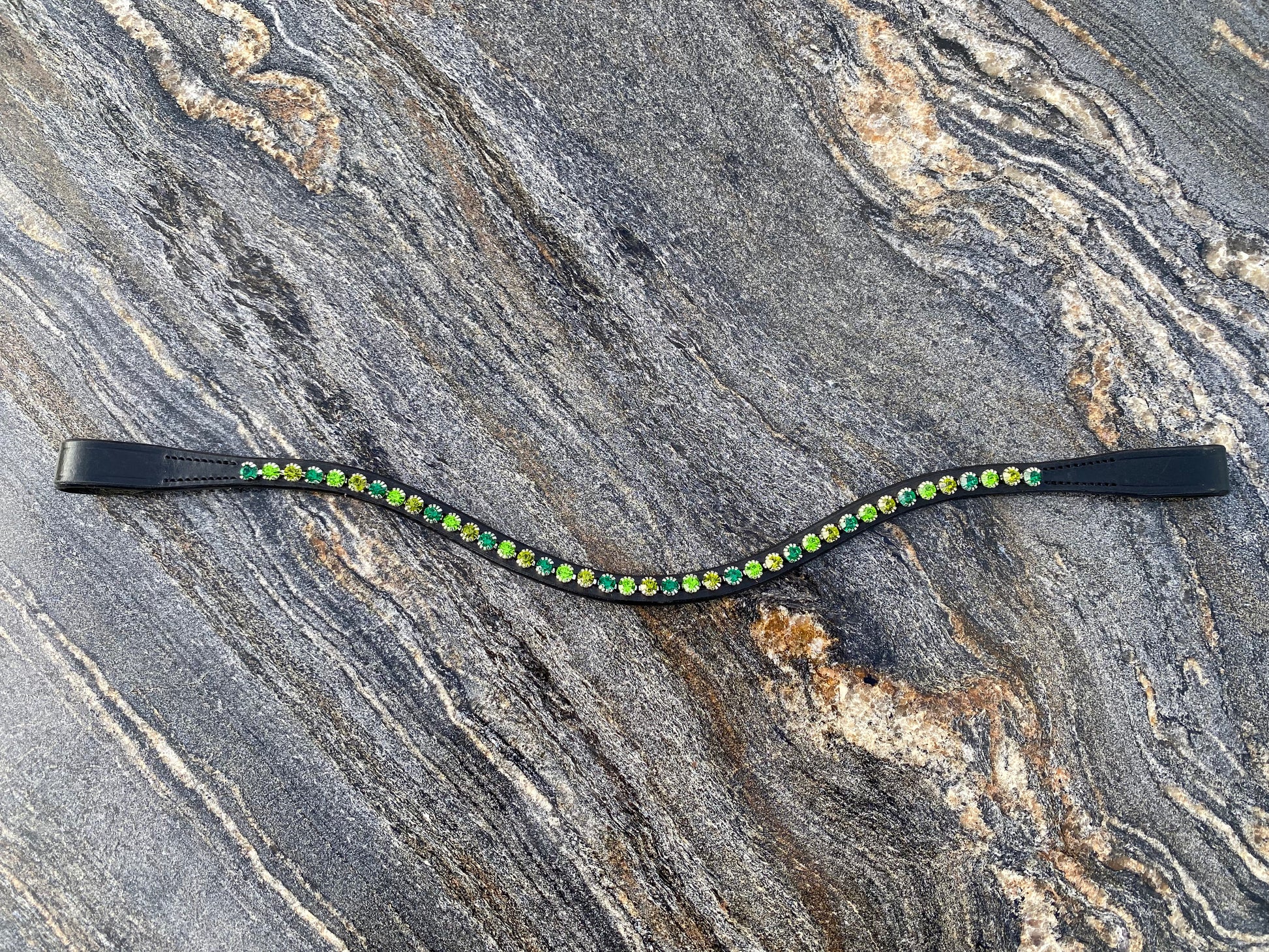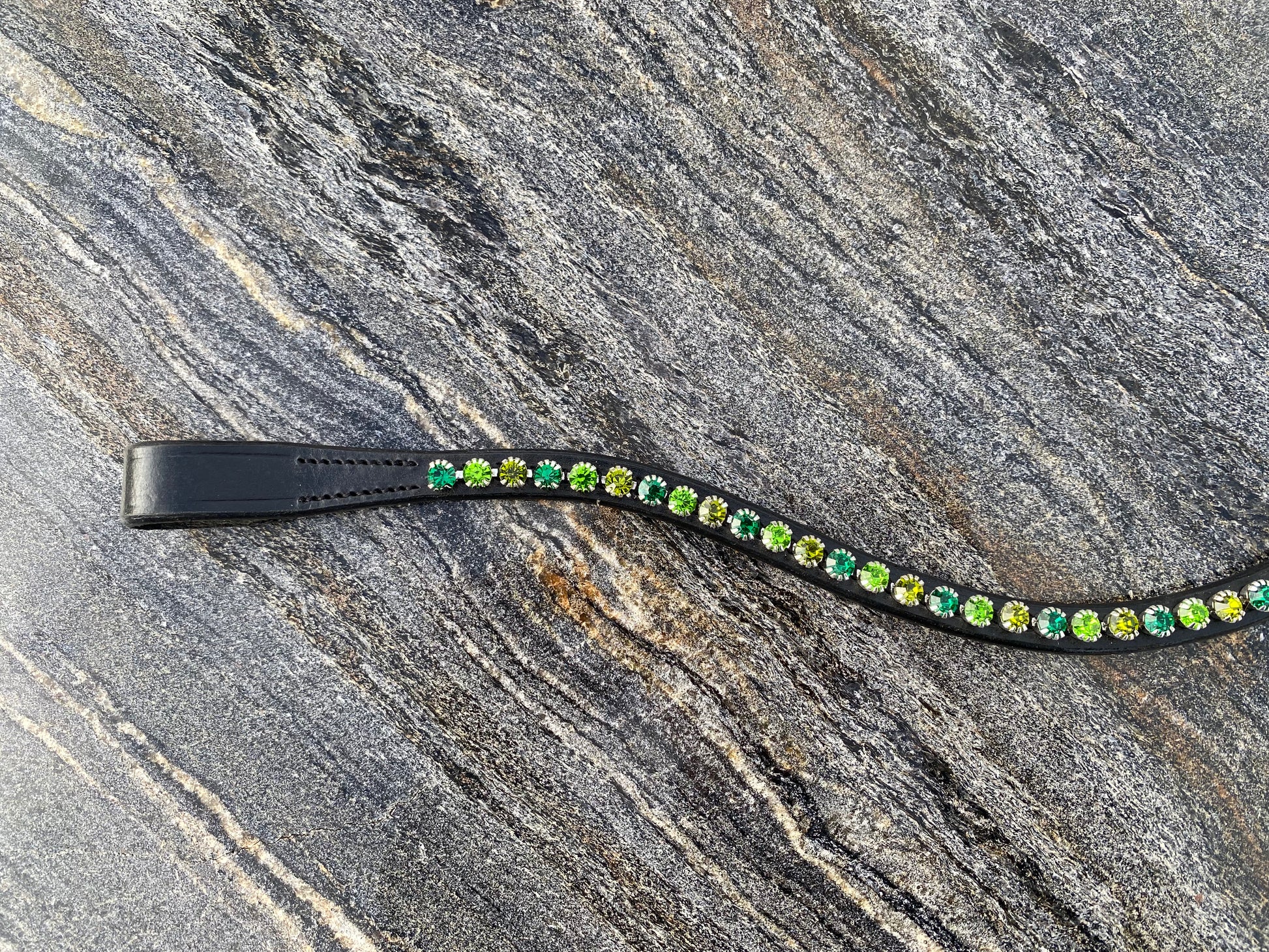 U-förmiger Echtleder Stirnriemen mit 6 mm grossen Glitzersteinen. In Schwarz erhältlich. Masse: PONY = 39 cm, COB = 41 cm, FULL = 45 cm