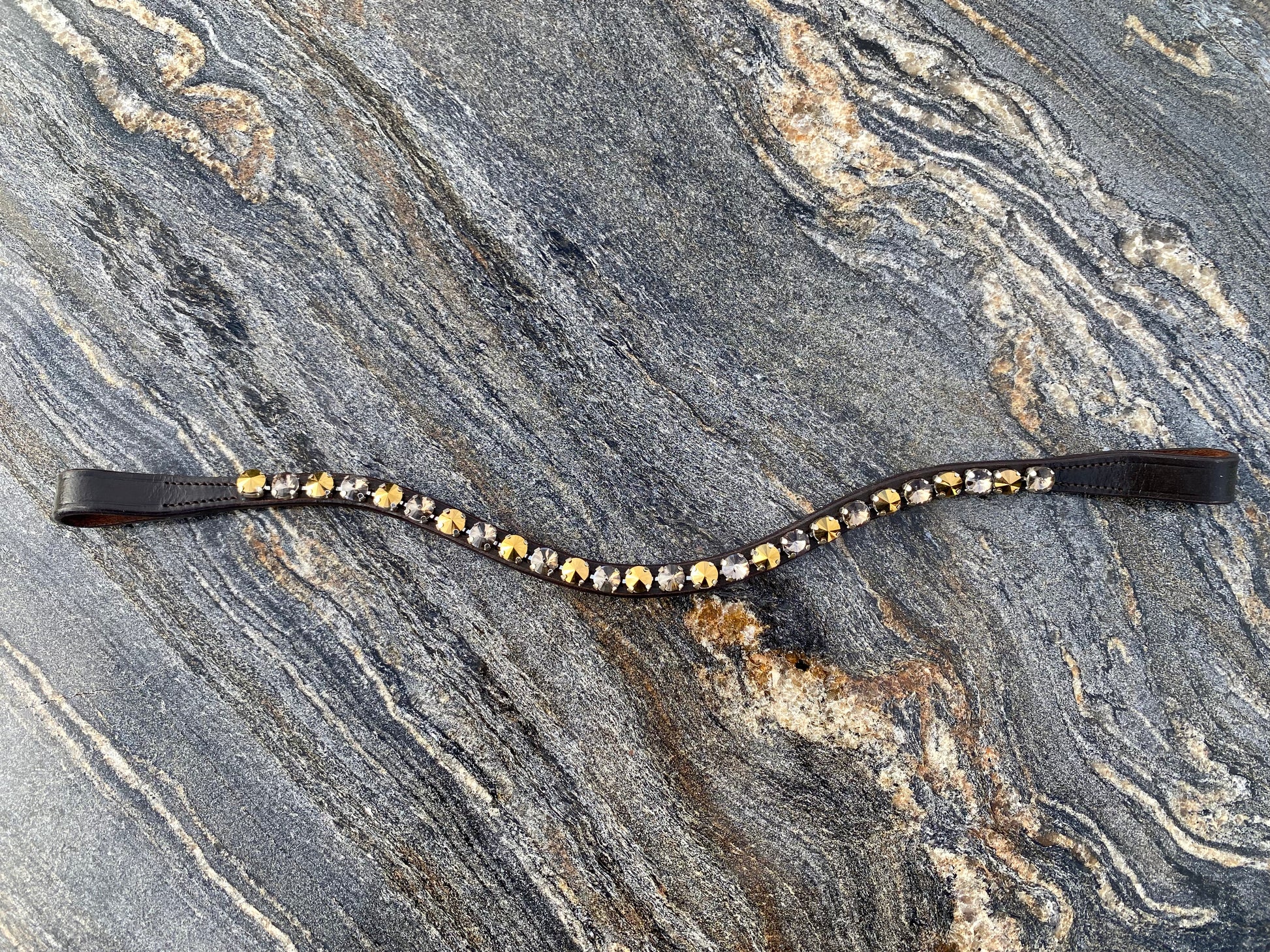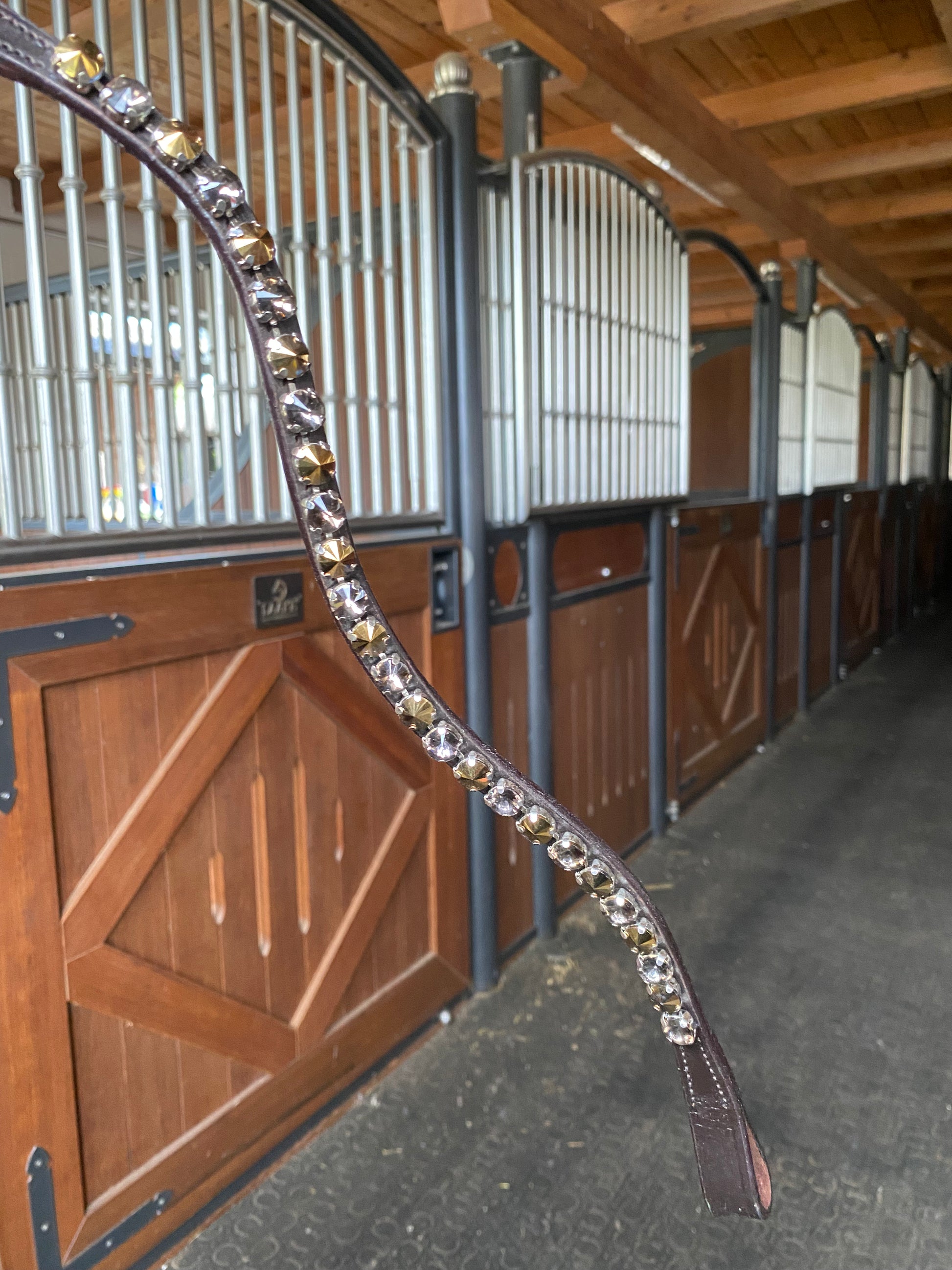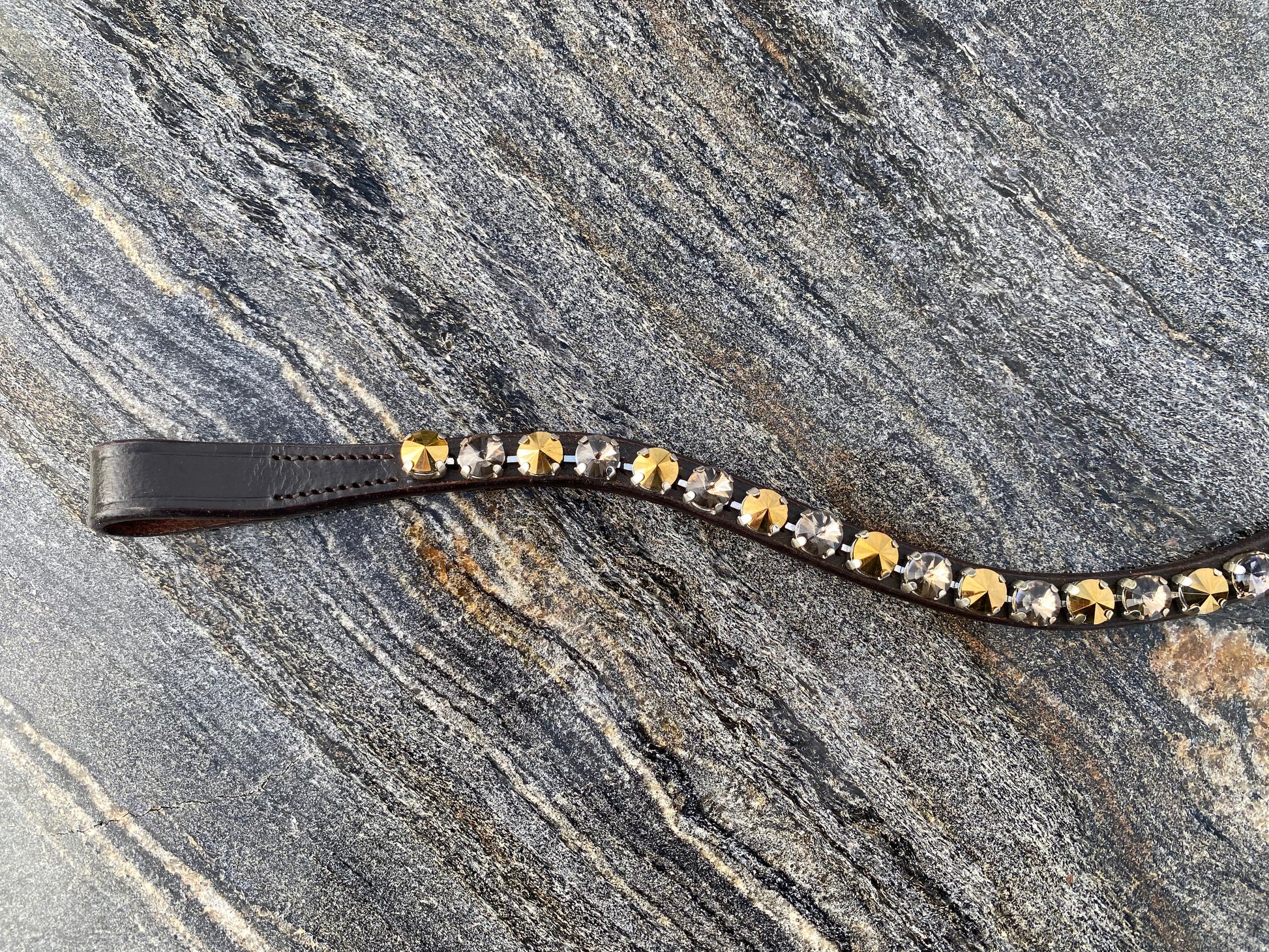 U-förmiger Echtleder Stirnriemen mit grossen Glitzersteinen. In Braun erhältlich. Masse: PONY = 39 cm, COB = 41 cm, FULL = 45 cm
